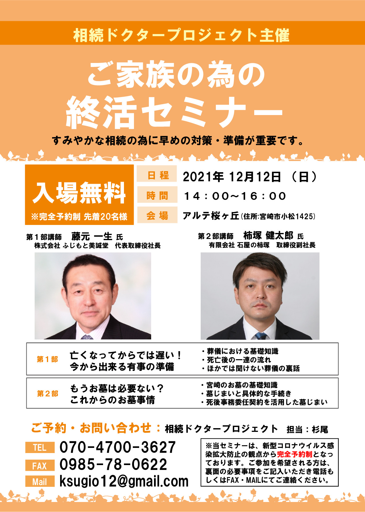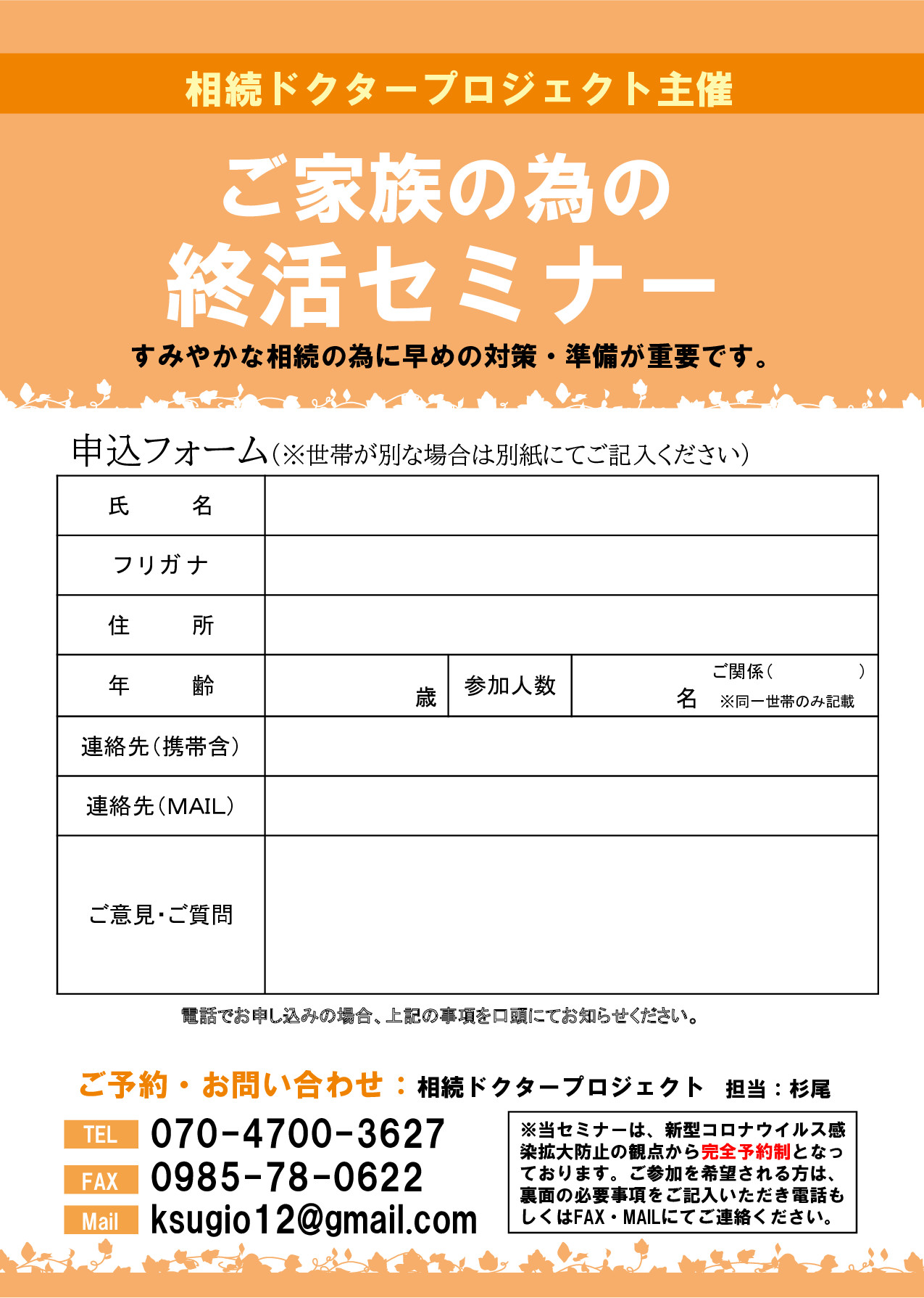 ご参加をご希望の方は相続ドクタープロジェクト 杉尾様までご連絡ください。
