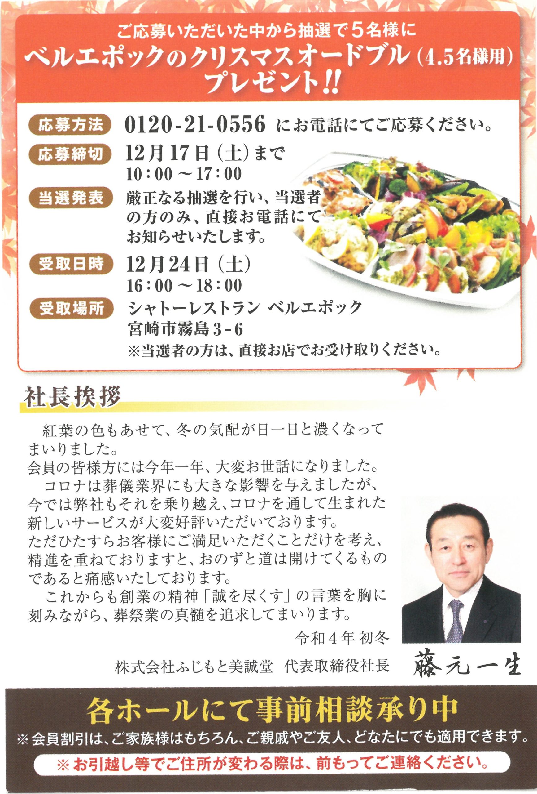 「ベルエポックのクリスマスオードブルプレゼント抽選会」を