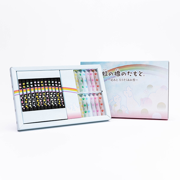 足あとマークのデザインが愛らしく、お線香はバニラを基調とした甘い香りで優しい気持ちにしてくれます。