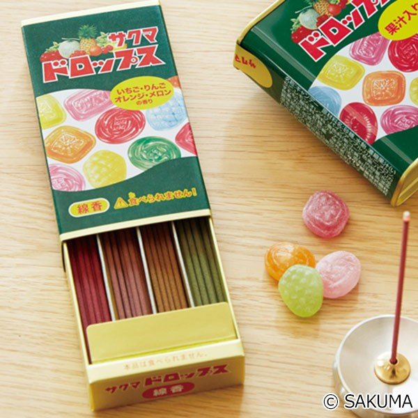 おなじみのサクマドロップスをモチーフにした愛らしいお線香です。