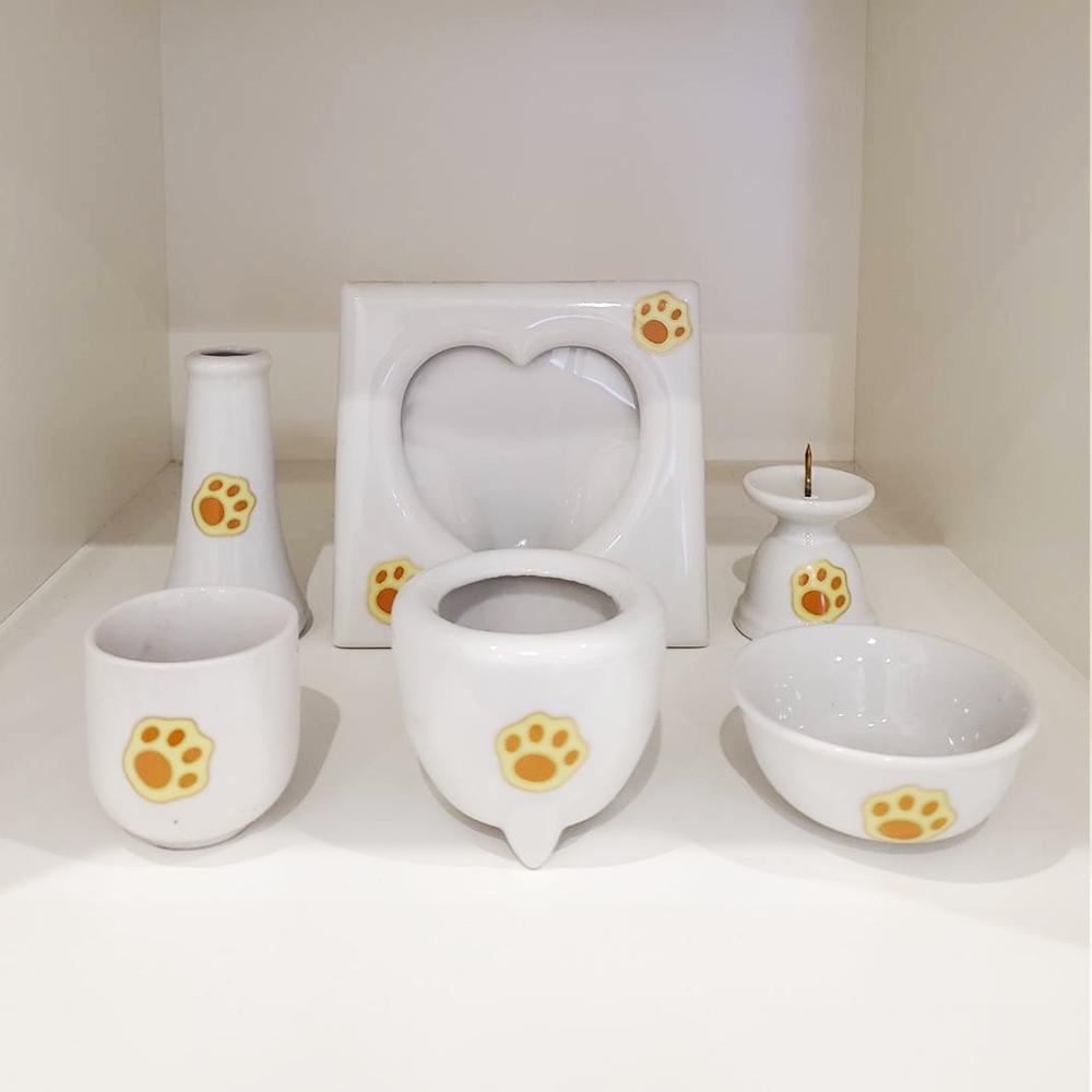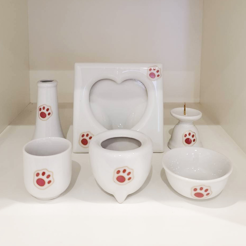 ペットちゃんかたちの手元供養用遺骨入れ。