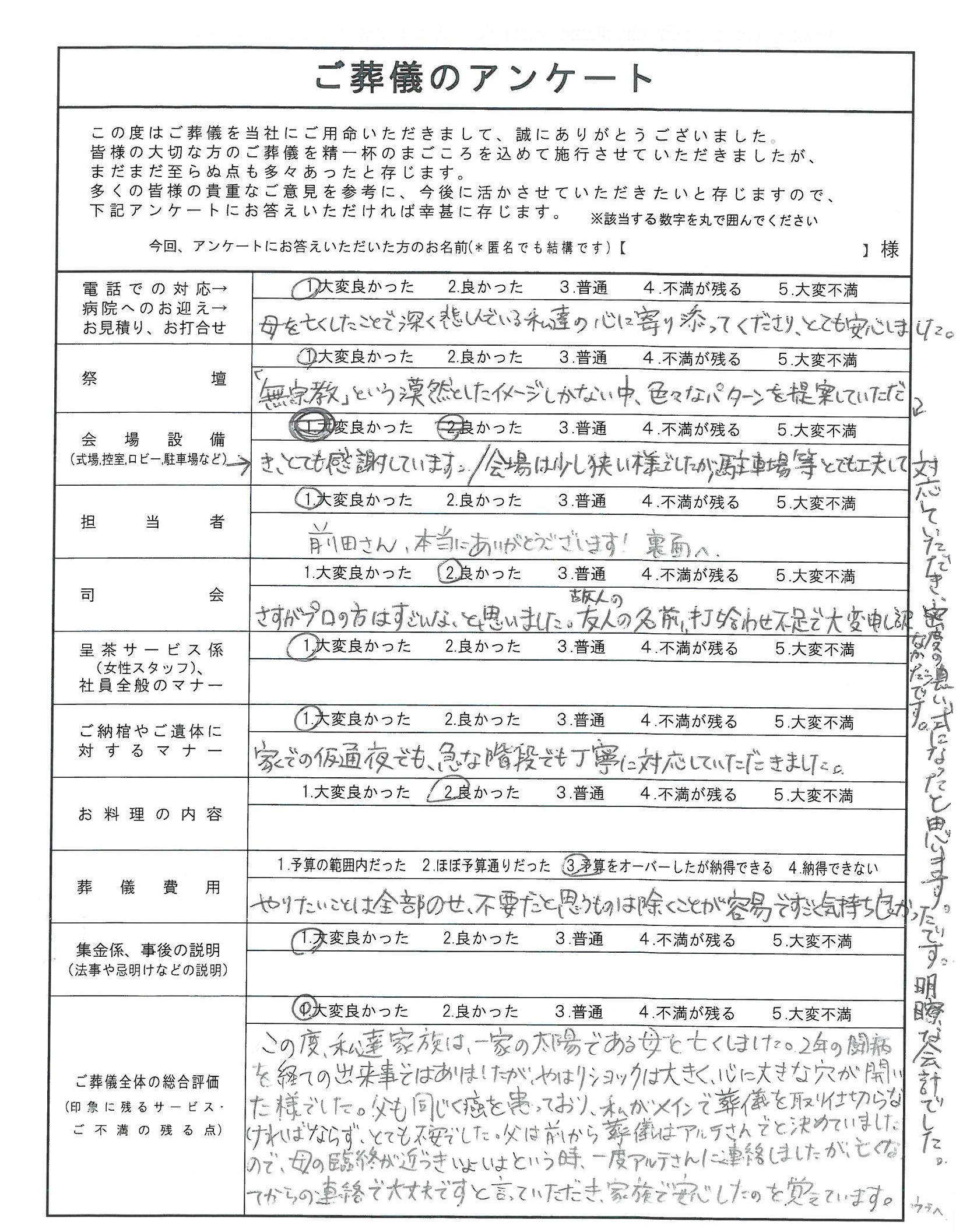 弊社のサービス・担当者の対応など、アンケートを通じてお声をいただきました。