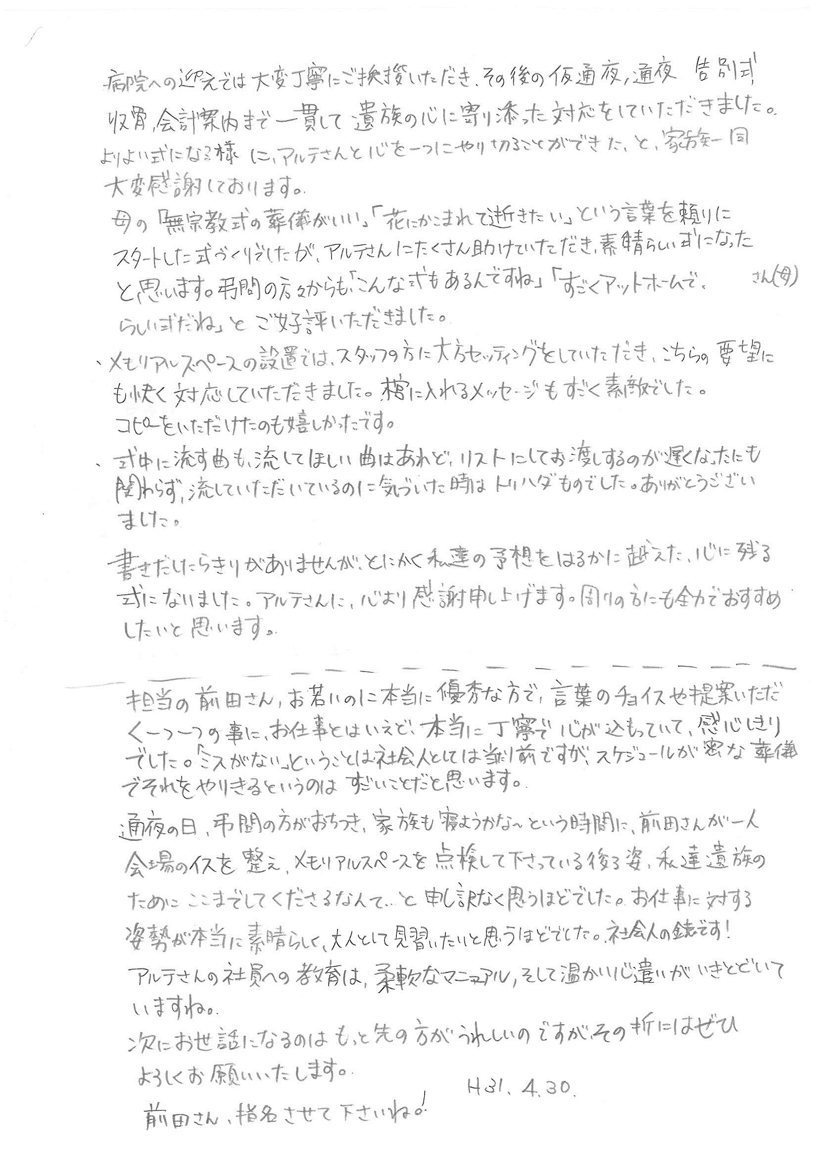 ご葬儀のご依頼をいただいたお客様より