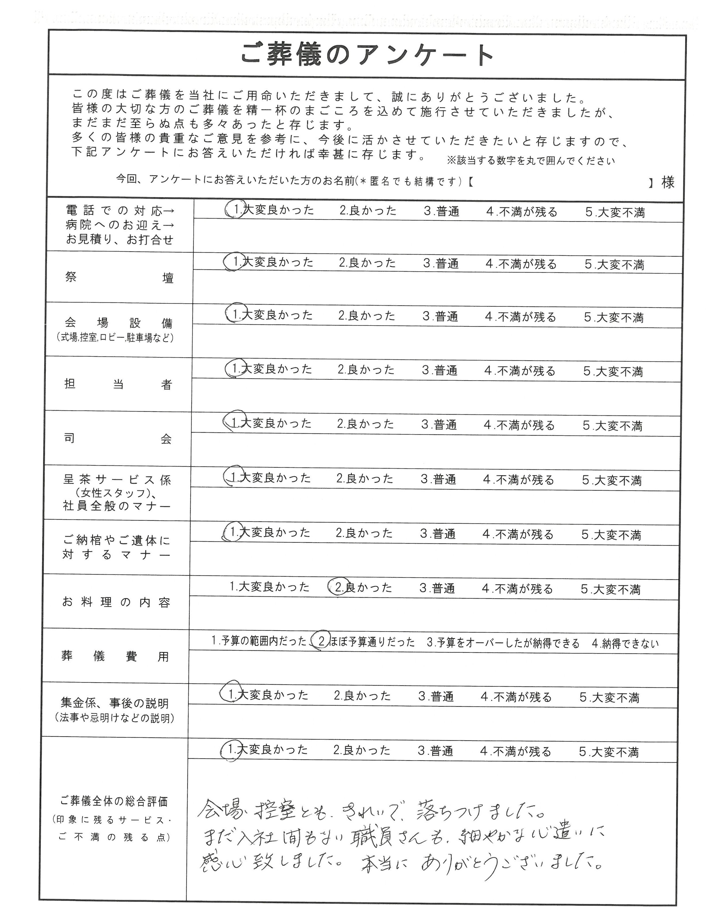 弊社のサービス・担当者の対応など、アンケートを通じてお声をいただきました。