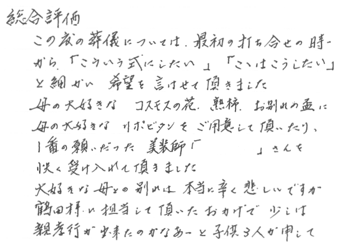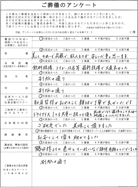 弊社のサービス・担当者の対応などに関しましてアンケートとお手紙を通じてお声をいただきました。