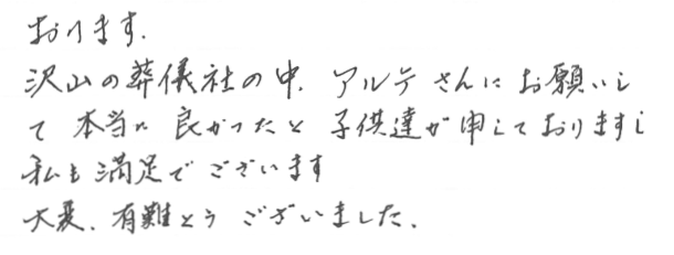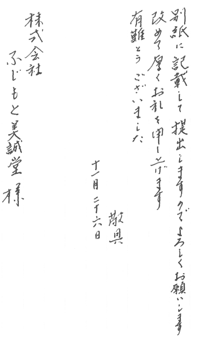 御礼のお手紙を頂きまして誠にありがとうございます。