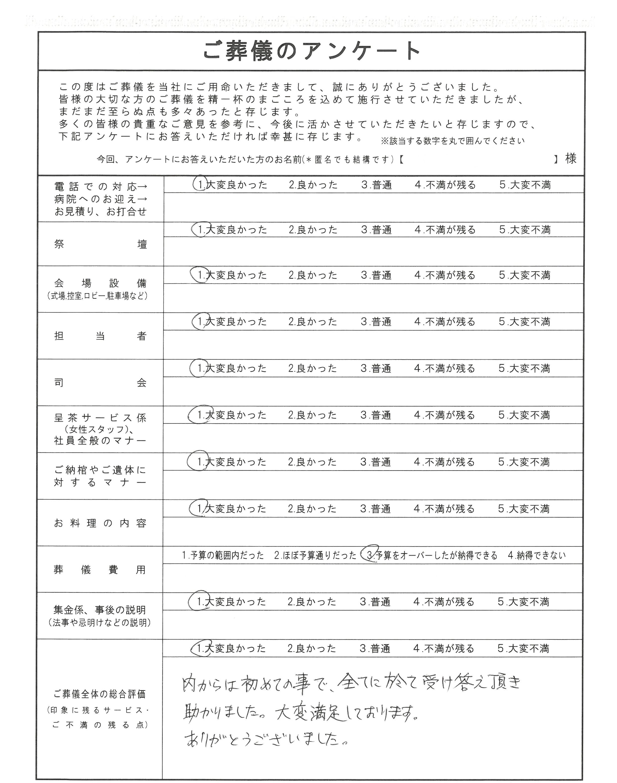 弊社のサービス・担当者の対応など、アンケートを通じてお声をいただきました。