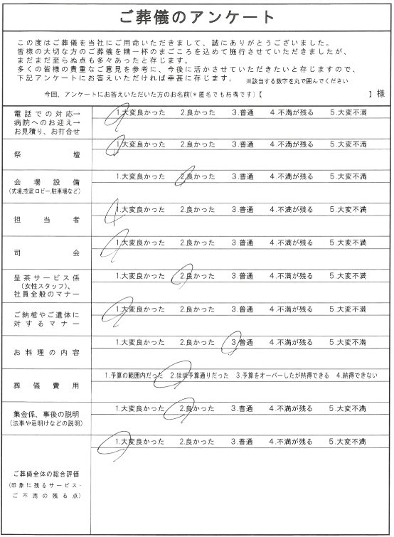弊社のサービス・担当者の対応など、アンケート等を通じてお声をいただきました。