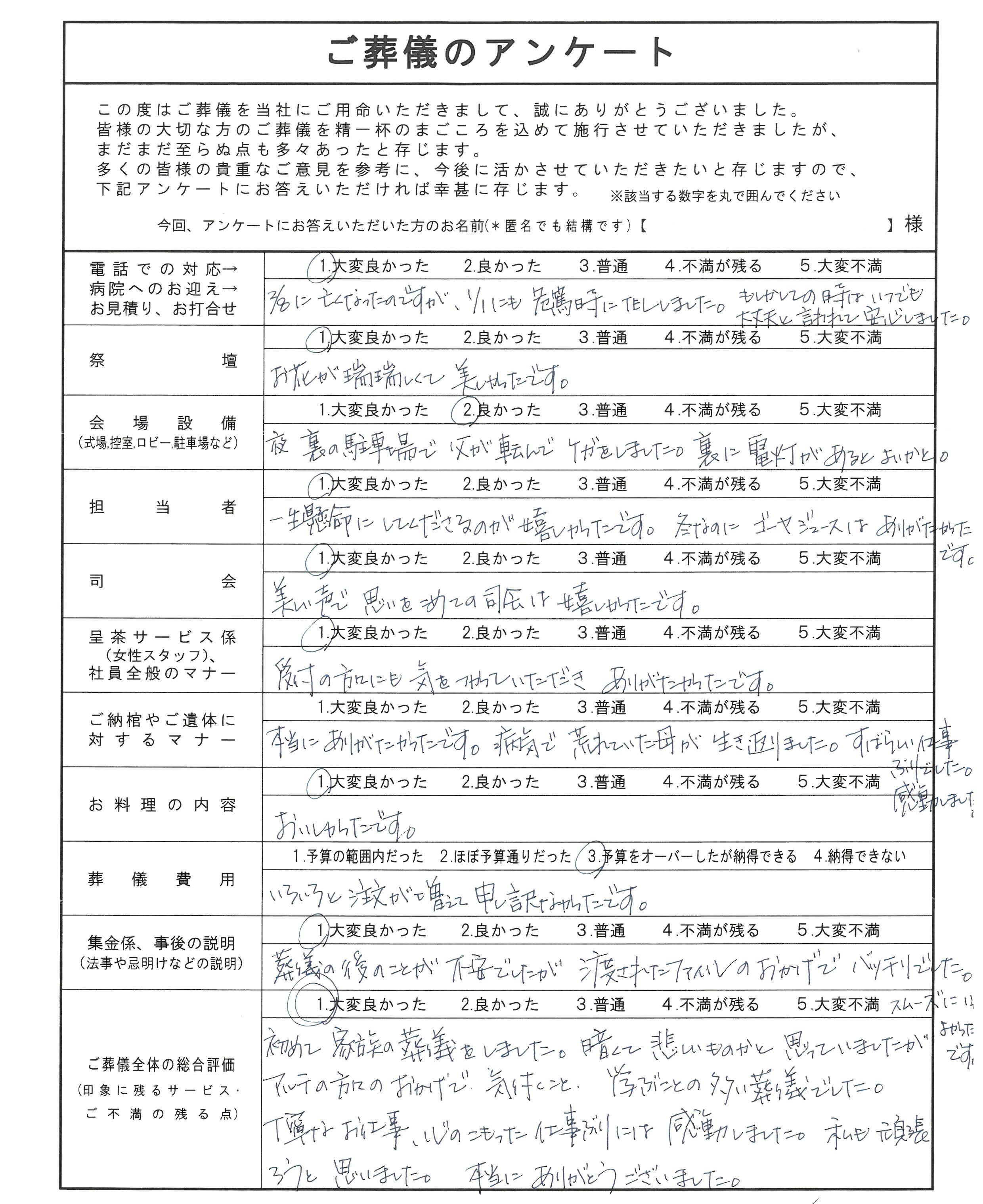 頂戴したアンケートを以下に掲載致します。