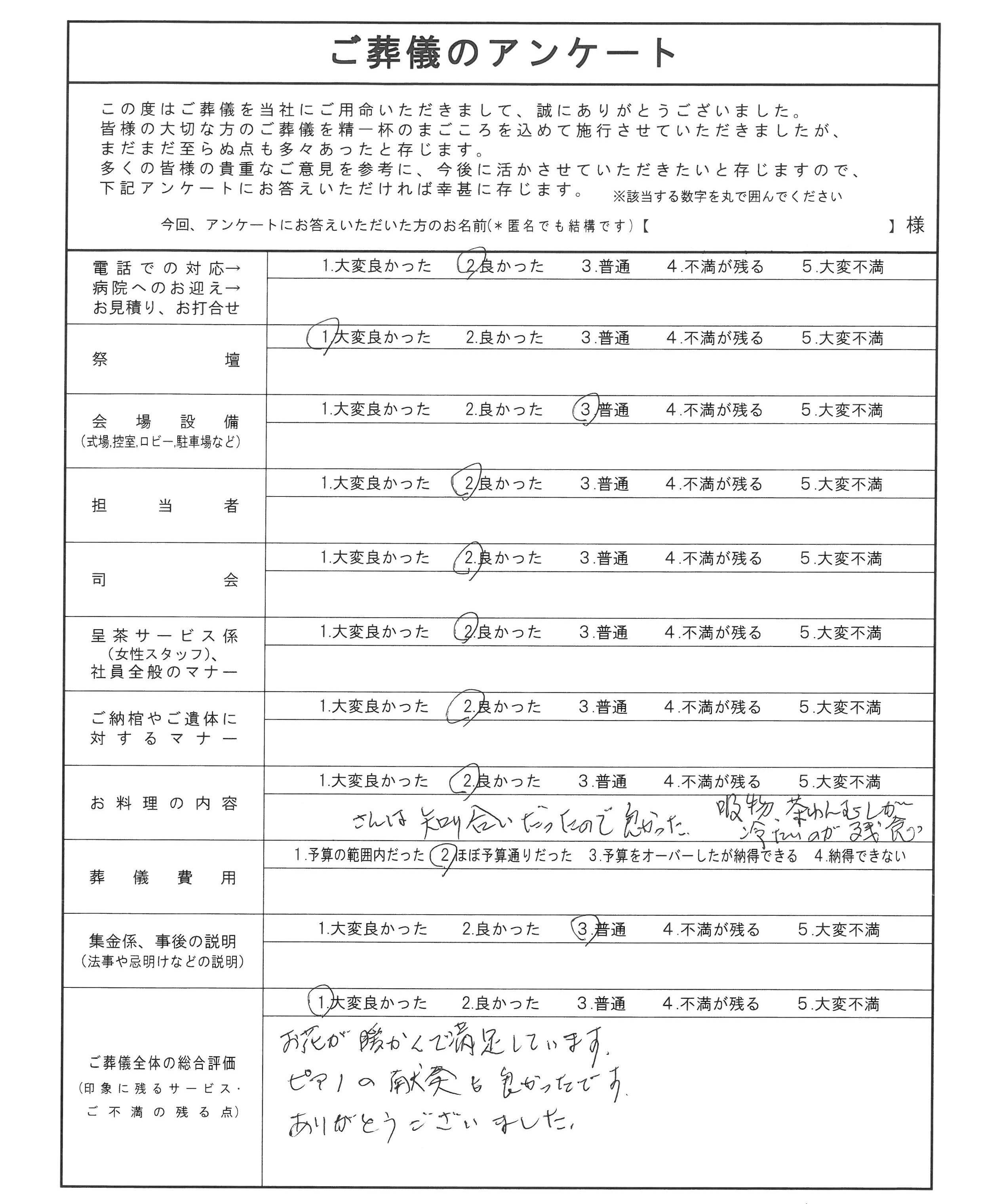 頂戴したアンケートを以下に掲載致します。